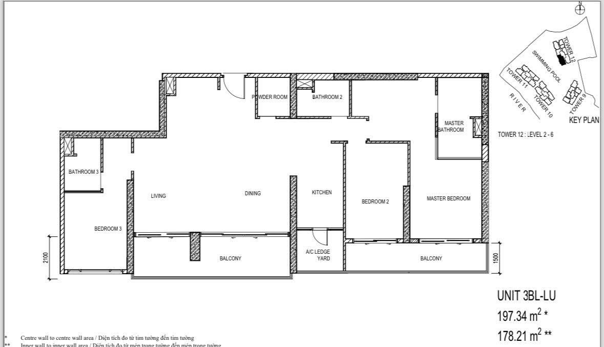 Block: Tháp 12 | Số phòng ngủ: 3 | Diện tích: 197 |